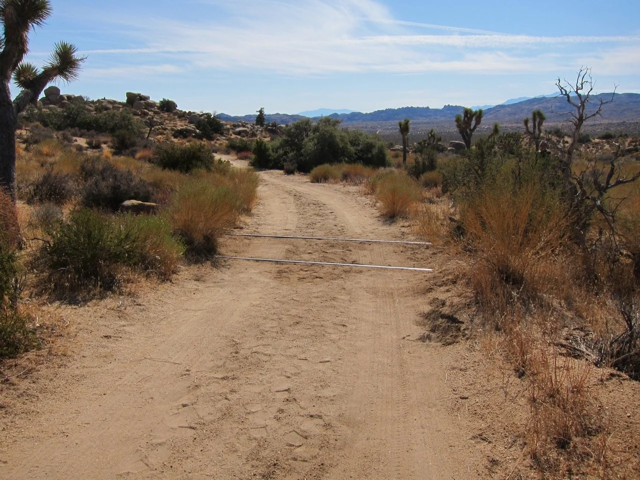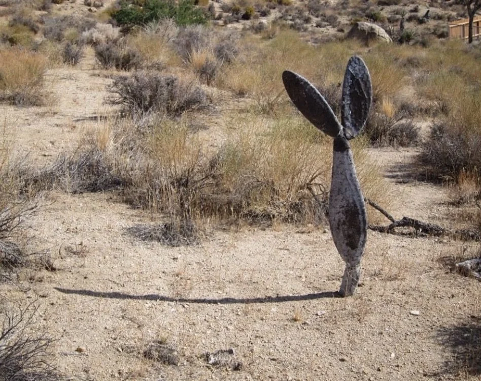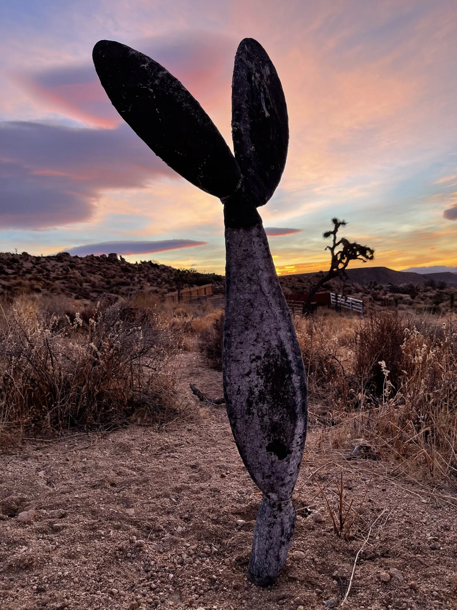 Stephenson Standard, 2011 Two lengths of 1937 lacquered bullhead steel rail, permanently installed in the Mojave Desert, California.